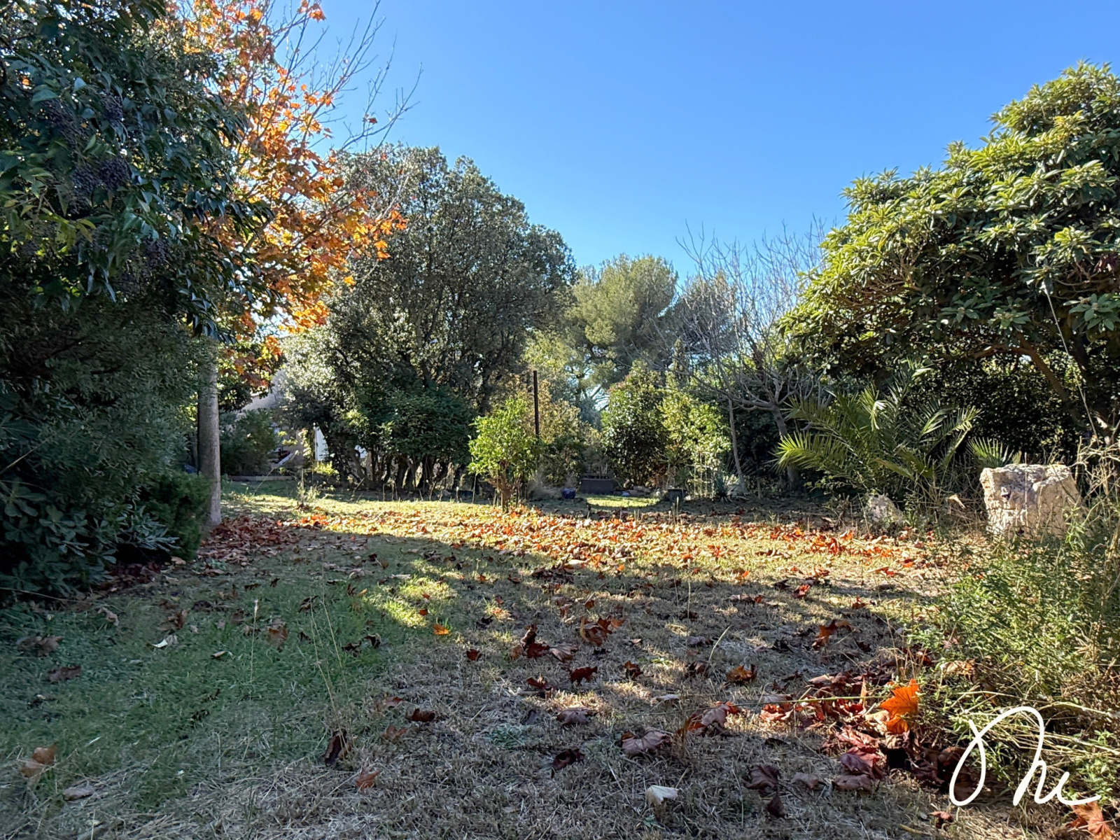 À l'extérieur : un jardin magnifiquement arboré, piscinable et avec 2 terrasses aménagées pour profiter de notre climat toute l'année !