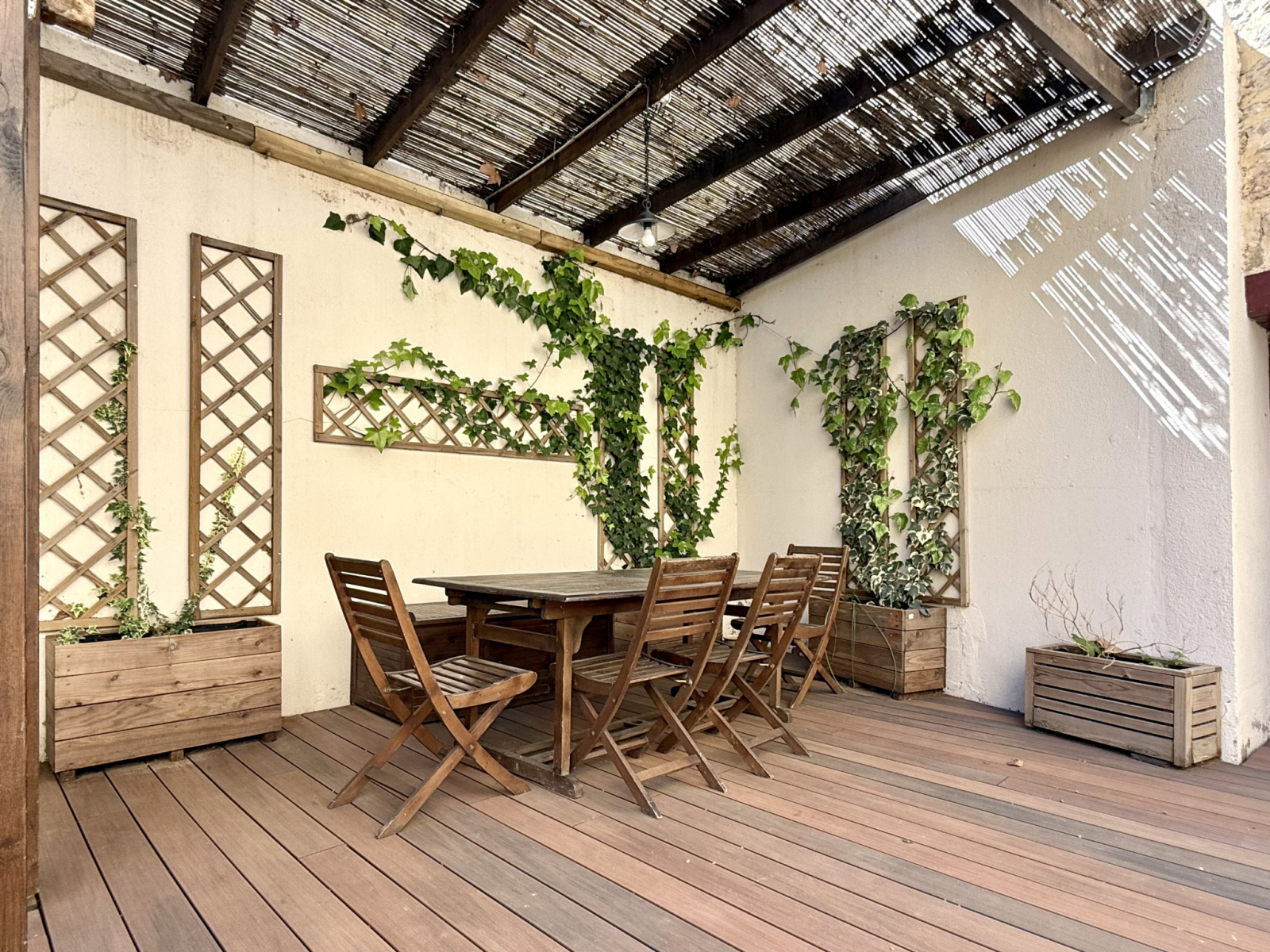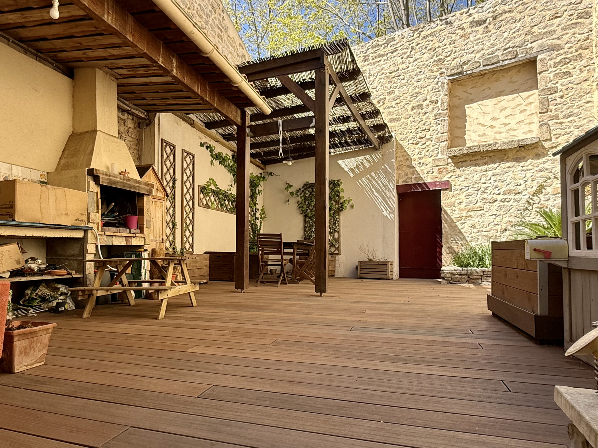 Son atout : un exterieur de 75 m² déjà aménagé avec sol en bois, pergola et barbecue. Vous n'avez plus qu'à lancer les invitations :)