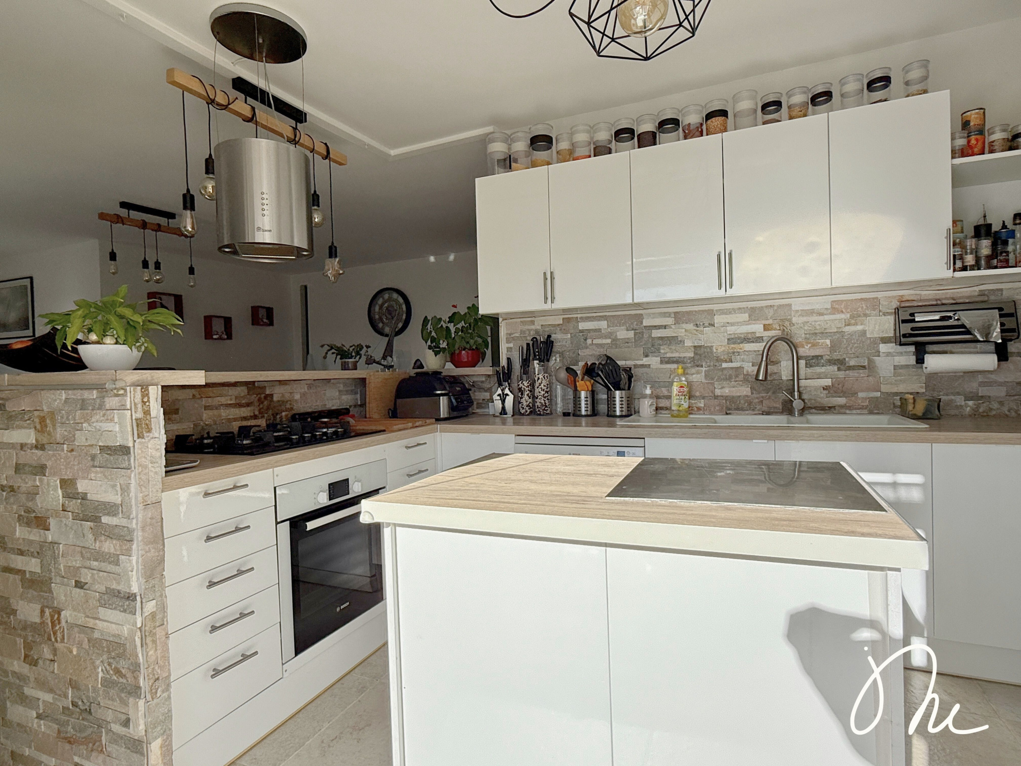 Entièrement de plain-pied, elle est très bien agencée avec son entrée qui dessert le grand séjour lumineux et sa cuisine ouverte, aménagée et équipée. Le tout est baigné de lumière avec une exposition sud et donne accès à une grande terrasse bois et une piscine enterrée au sel.